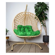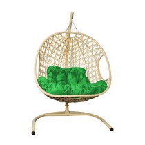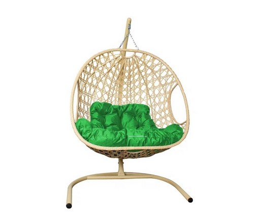 Подвесное кресло ДЛЯ ДВОИХ Люкс с ротангом (бежевое с зеленой подушкой)
