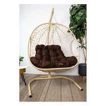 Подвесное кресло ДЛЯ ДВОИХ с ротангом (бежевое с коричневой подушкой)