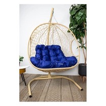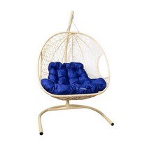 Подвесное кресло ДЛЯ ДВОИХ с ротангом (бежевое с синей подушкой)