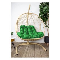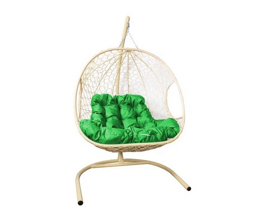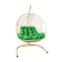 Подвесное кресло ДЛЯ ДВОИХ с ротангом (бежевое с зеленой подушкой)