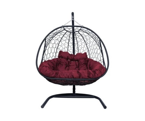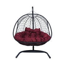 Подвесное кресло ДОБРЫНЯ с ротангом (черный с бордовой подушкой).