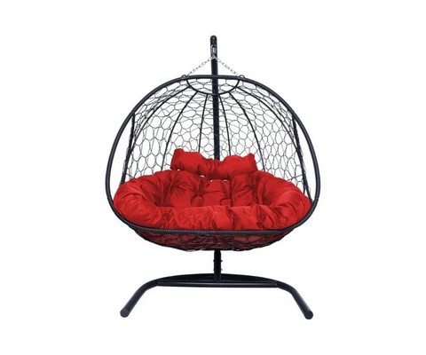 Подвесное кресло ДОБРЫНЯ с ротангом (черный с красной подушкой)