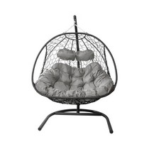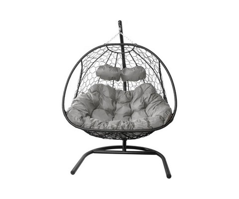 Подвесное кресло ДОБРЫНЯ с ротангом (черный с серой подушкой)