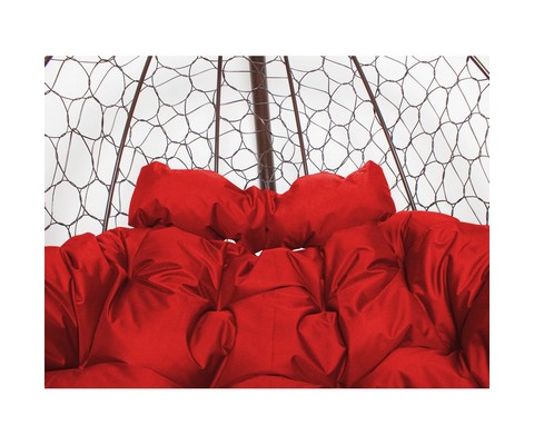 Подвесное кресло ДОБРЫНЯ с ротангом (коричневый с красной подушкой)
