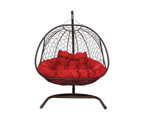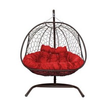 Подвесное кресло ДОБРЫНЯ с ротангом (коричневый с красной подушкой).