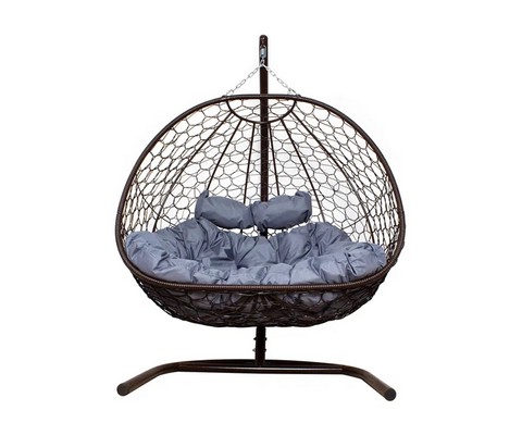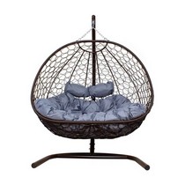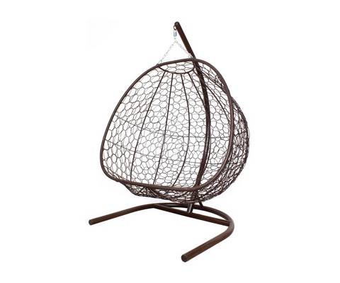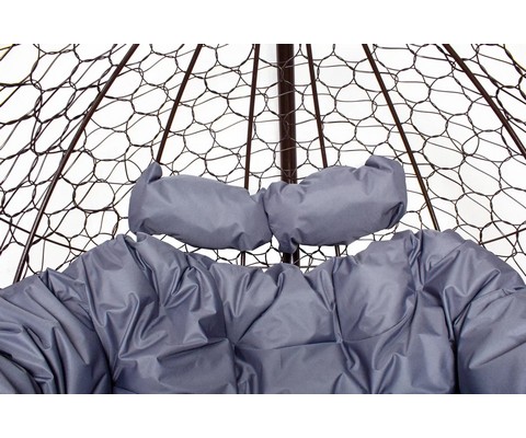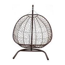 Подвесное кресло Добрыня без проушин с ротангом (коричневое, синяя подушка)