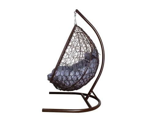 Подвесное кресло Добрыня без проушин с ротангом (коричневое, синяя подушка).