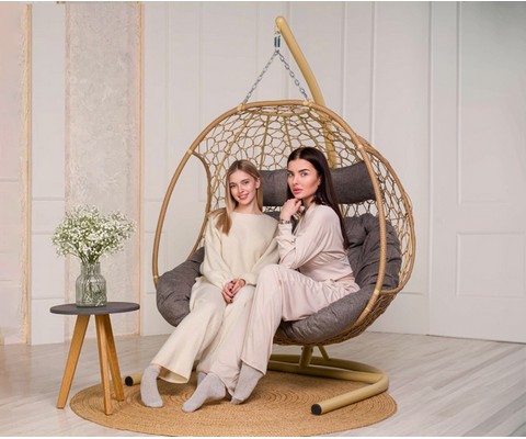 Подвесное кресло Добрыня с ротангом — универсальное решение для отдыха как в помещении, так и на открытом воздухе.