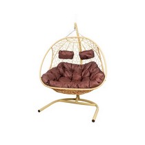 Подвесное кресло Добрыня с ротангом (бежевое с коричневой подушкой)