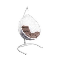 Подвесное кресло Капля Home с ротангом (белое, подушка Какао)