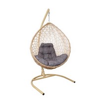 Подвесное кресло Капля Home с ротангом (бежевое, подушка Пепел)