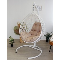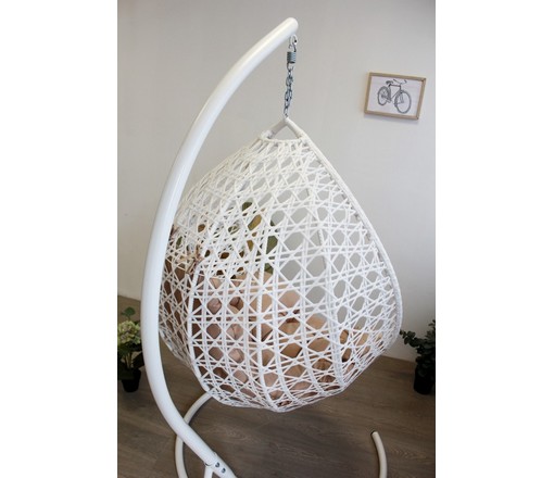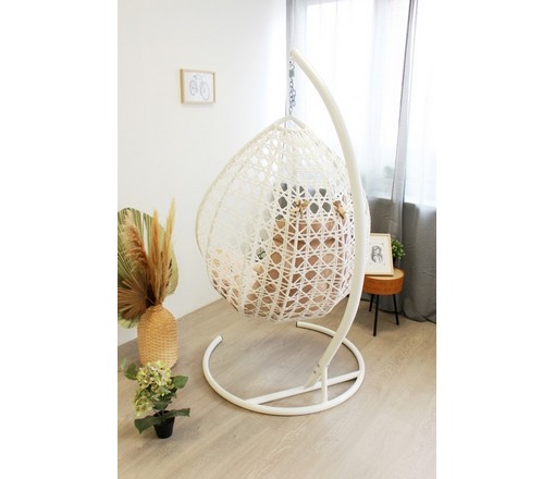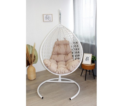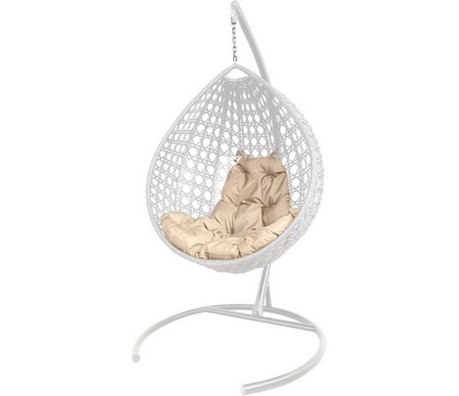 Подвесное кресло Капля Люкс (белое с бежевой подушкой)