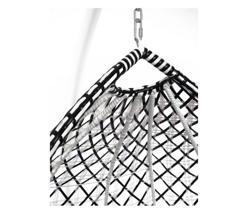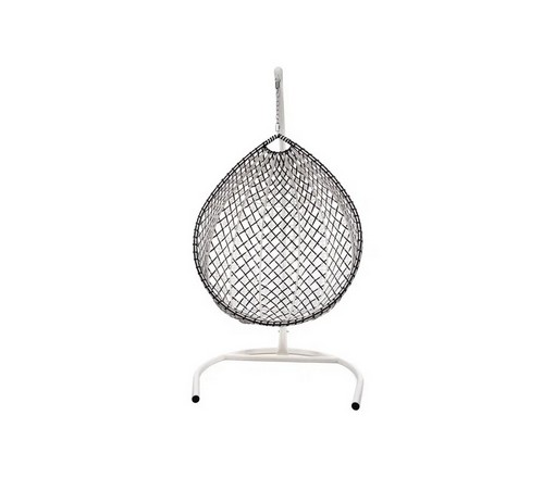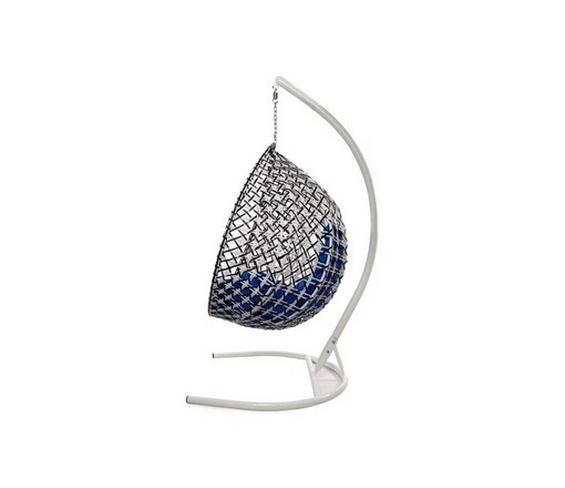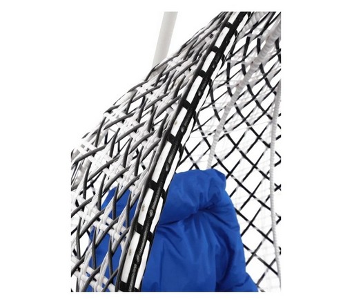 Подвесное кресло Капля Люкс двуцветное с ротангом (белое/черное с синей подушкой)