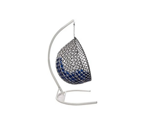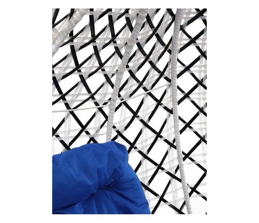 Цвет изделия: каркас - белый, плетение - бело-черное, подушка - синяя.