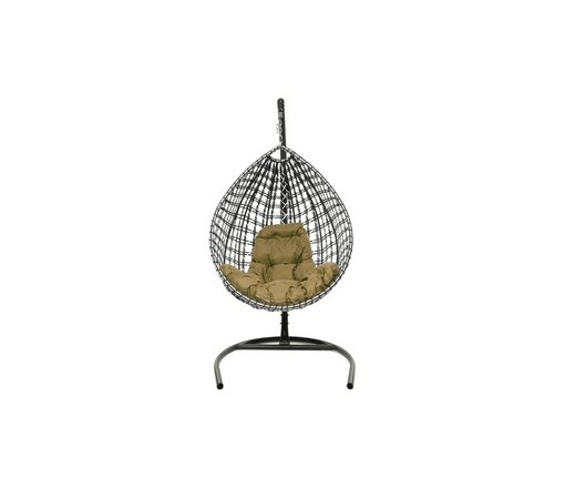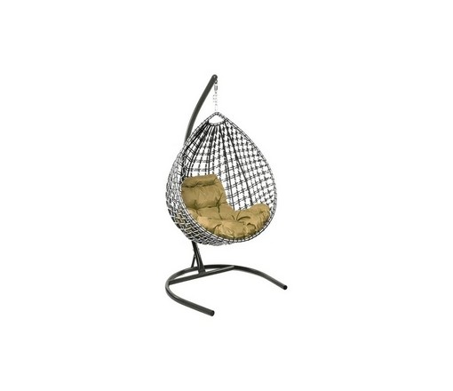 Подвесное кресло Капля Люкс двуцветное с ротангом (черное/белое с бежевой подушкой)