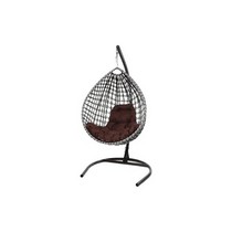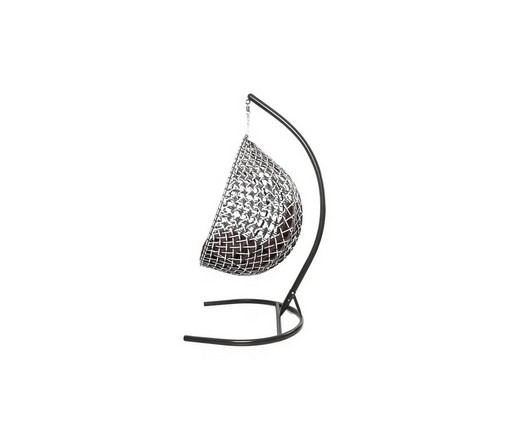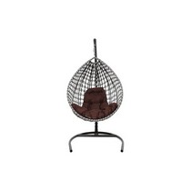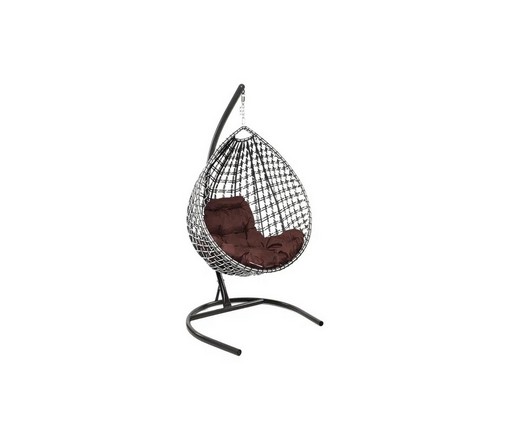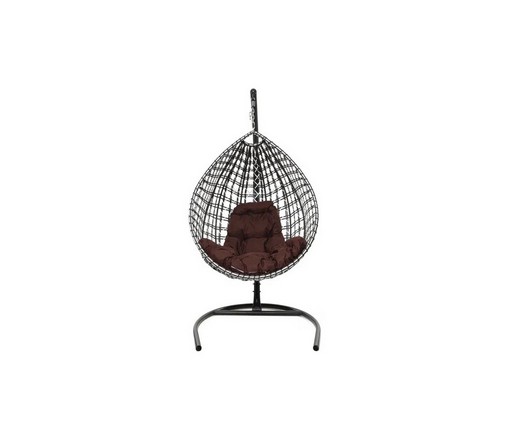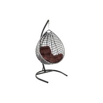 Подвесное кресло Капля Люкс двуцветное с ротангом (черное/белое с коричневой подушкой)