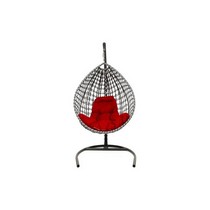 Подвесное кресло Капля Люкс двуцветное с ротангом (черное/белое с красной подушкой)