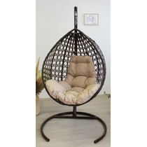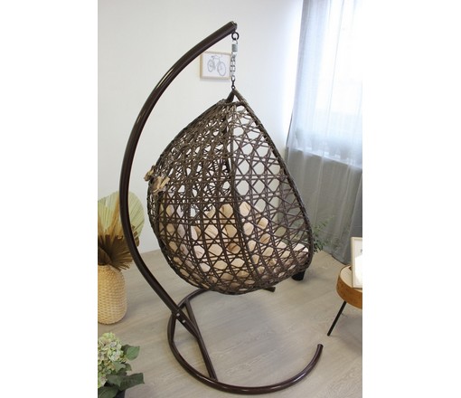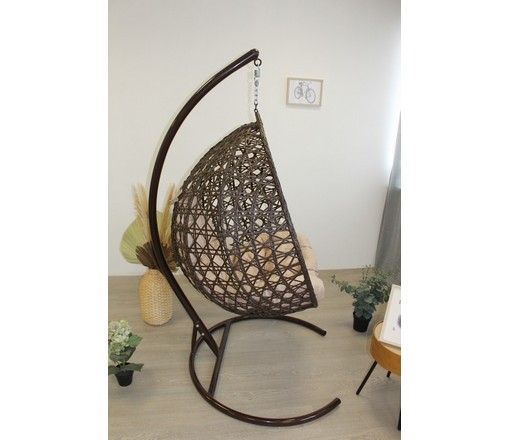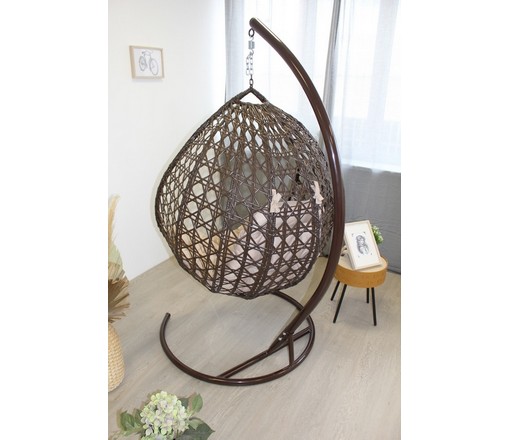 Подвесное кресло Капля Люкс (коричневое с бежевой подушкой)