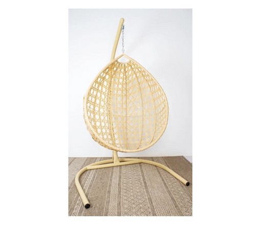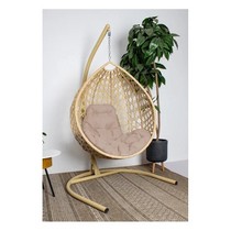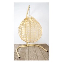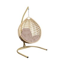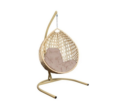Подвесное кресло Капля Люкс с ротангом (бежевое с бежевой подушкой)