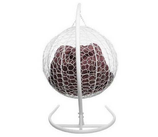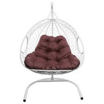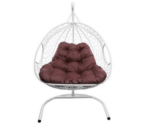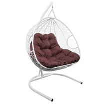 Подвесное кресло Кокон ДЛЯ ДВОИХ ротанг (белый/бордовый)
