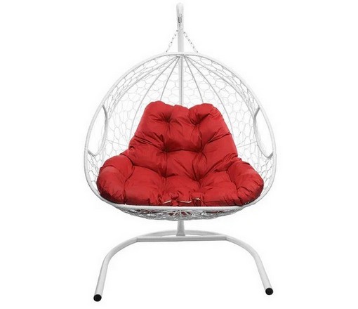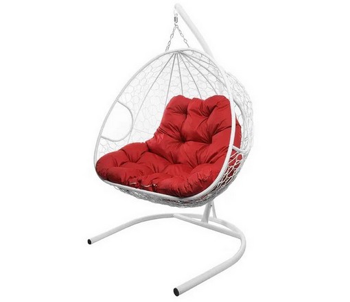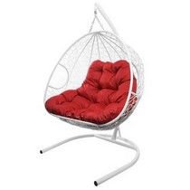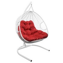 Подвесное кресло Кокон ДЛЯ ДВОИХ ротанг (белый/красный)