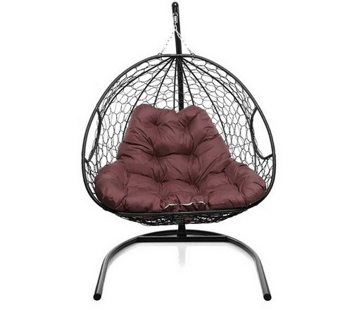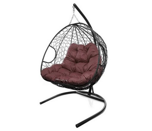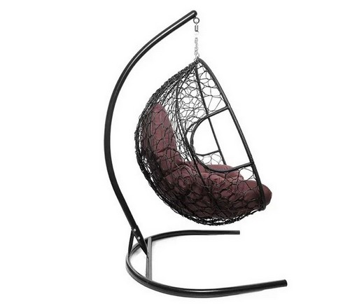 Подвесное кресло Кокон ДЛЯ ДВОИХ ротанг (черный/бордовый)
