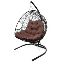 Подвесное кресло Кокон ДЛЯ ДВОИХ ротанг (черный/коричневый)