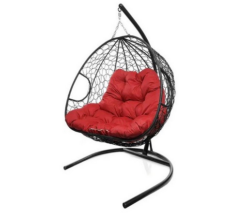 Подвесное кресло Кокон ДЛЯ ДВОИХ ротанг (черный/красный)