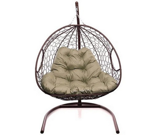 Подвесное кресло Кокон ДЛЯ ДВОИХ ротанг (коричневый/бежевый)
