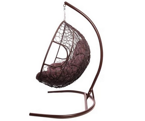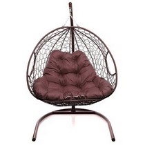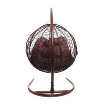 Подвесное кресло Кокон ДЛЯ ДВОИХ ротанг (коричневый/бордовый)