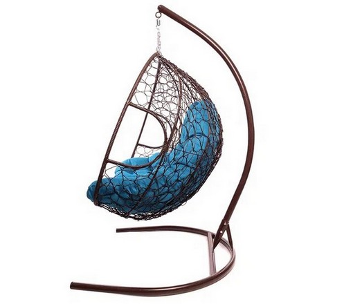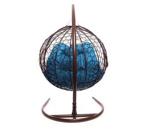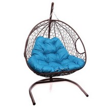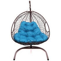 Подвесное кресло Кокон ДЛЯ ДВОИХ ротанг (коричневый/голубой)