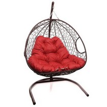Подвесное кресло Кокон ДЛЯ ДВОИХ ротанг (коричневый/красный)