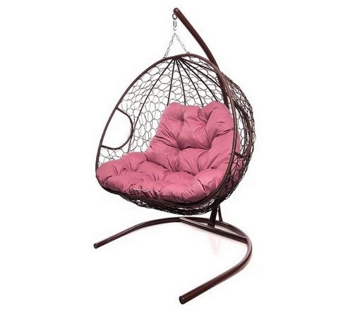 Подвесное кресло Кокон ДЛЯ ДВОИХ ротанг (коричневый/розовый)