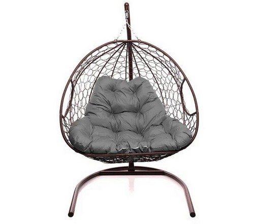 Подвесное кресло Кокон ДЛЯ ДВОИХ ротанг (коричневый/серый)