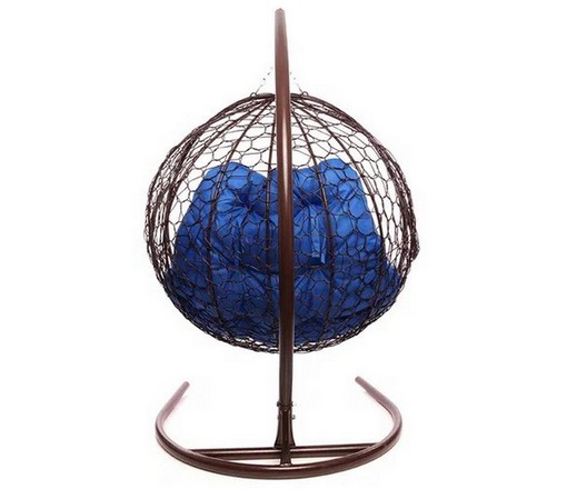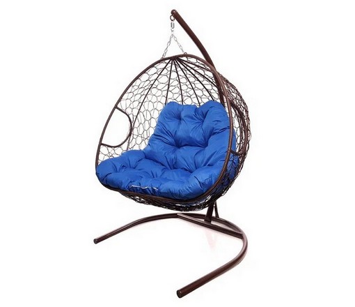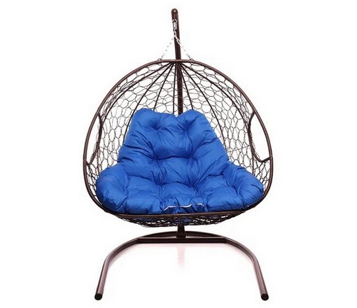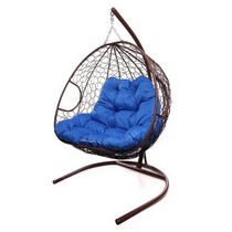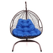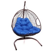 Подвесное кресло Кокон ДЛЯ ДВОИХ ротанг (коричневый/синий)