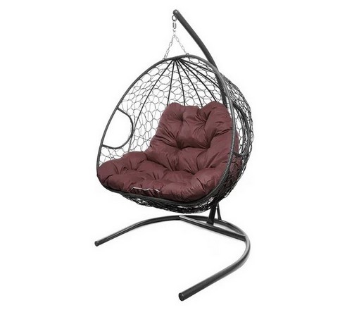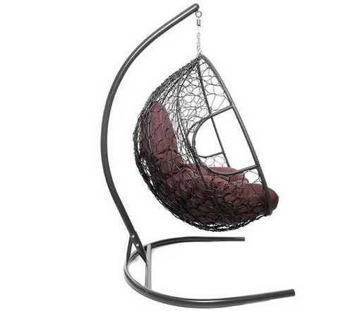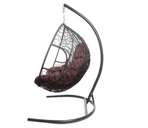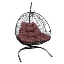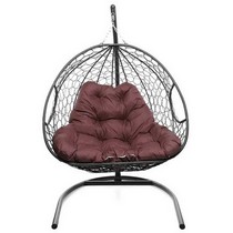 Подвесное кресло Кокон ДЛЯ ДВОИХ ротанг (серый/бордовый)