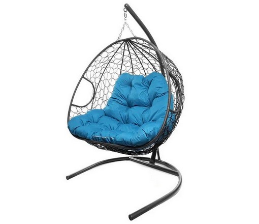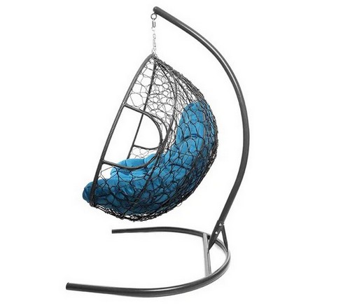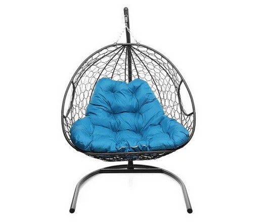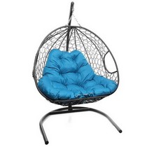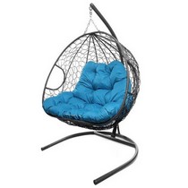 Подвесное кресло Кокон ДЛЯ ДВОИХ ротанг (серый/голубой)