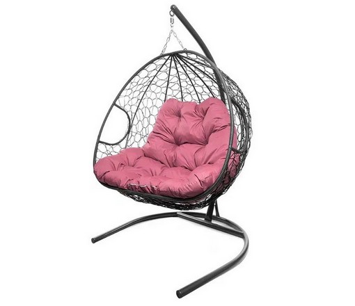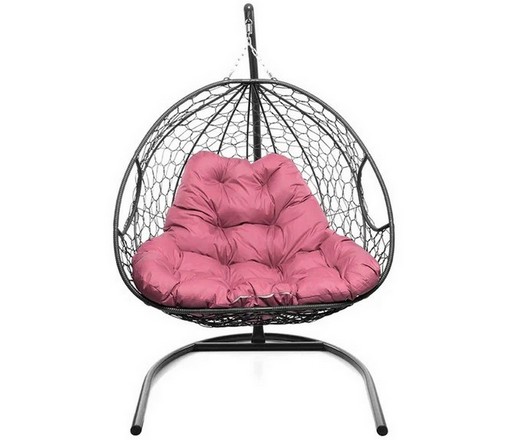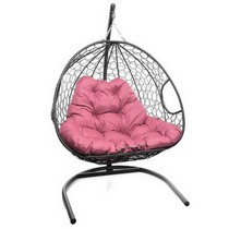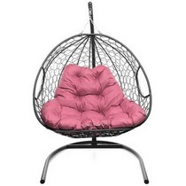 Подвесное кресло Кокон ДЛЯ ДВОИХ ротанг (серый/розовый)