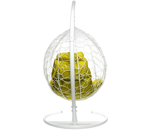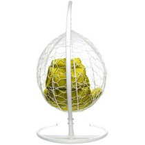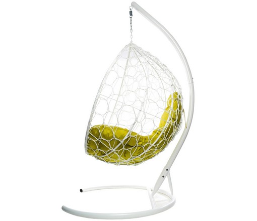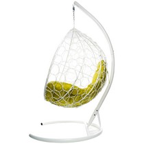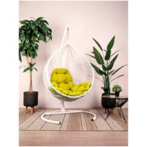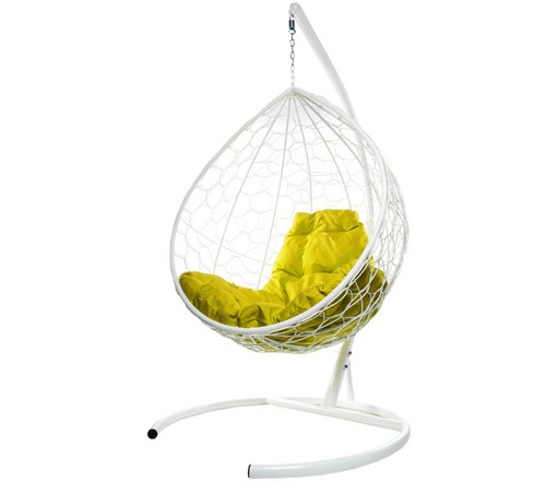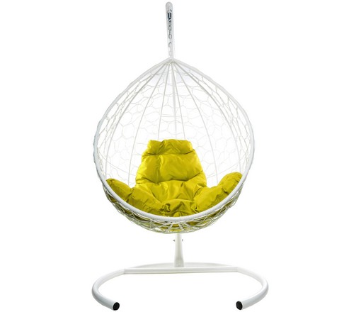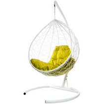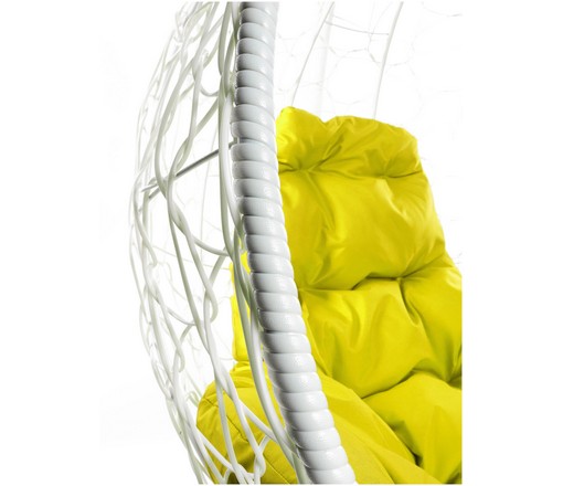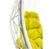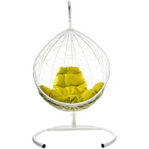 Подвесное кресло Кокон Капля Ротанг (белое с желтой подушкой)