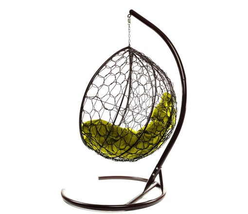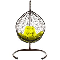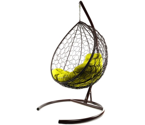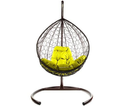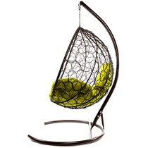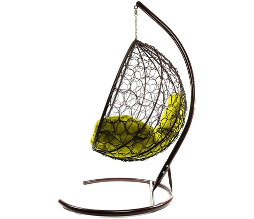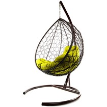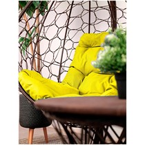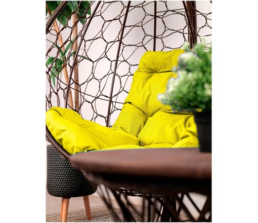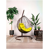 Подвесное кресло Кокон Капля Ротанг (коричневое с желтой подушкой)