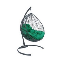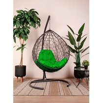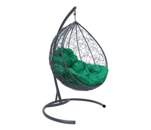 Подвесное кресло кокон Капля ротанг (серое с зеленой подушкой)