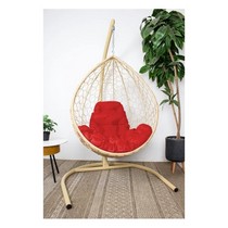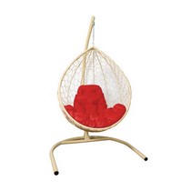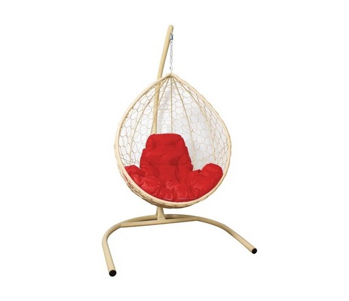 Подвесное кресло Кокон Капля с ротангом (бежевое с красной подушкой)