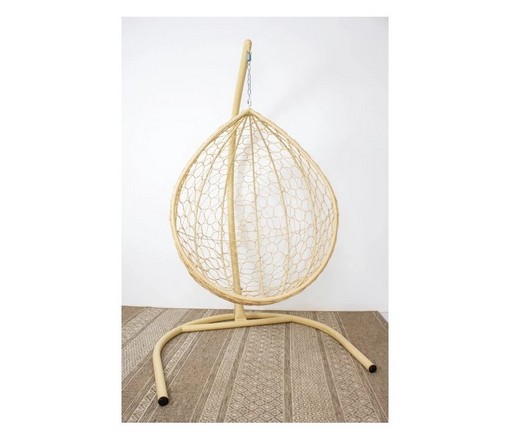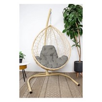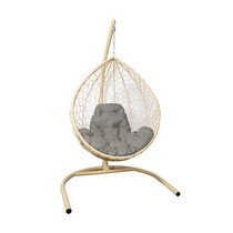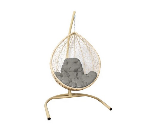 Подвесное кресло Кокон Капля с ротангом (бежевое с серой подушкой)