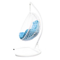 Подвесное кресло Кокон Капля складной ротанг (белый/голубой)