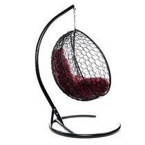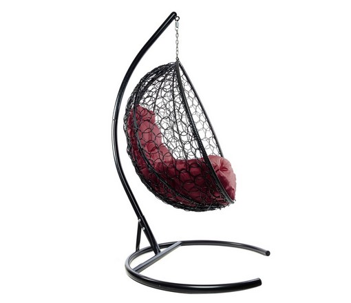 Подвесное кресло Кокон Капля складной ротанг (черный/бордовый)