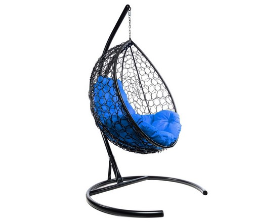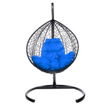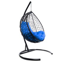 Подвесное кресло Кокон Капля складной ротанг (черный/синий)