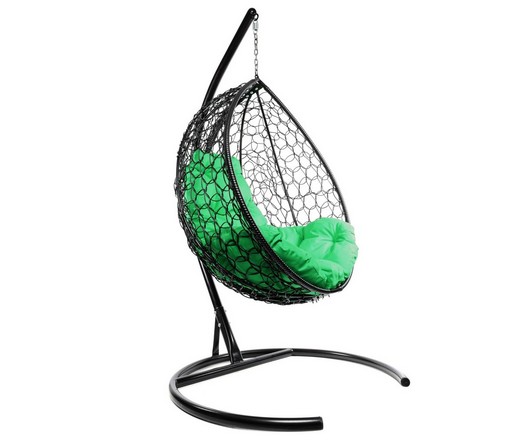 Подвесное кресло Кокон Капля складной ротанг (черный/зеленый)