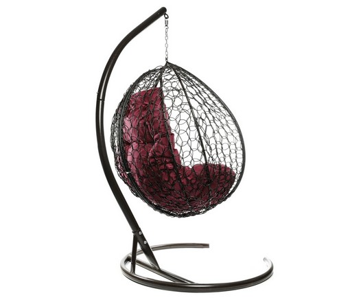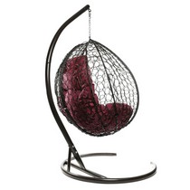 Подвесное кресло Кокон Капля складной ротанг (коричневый/бордовый)