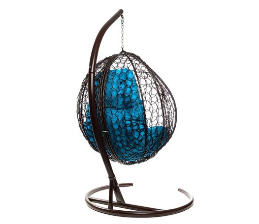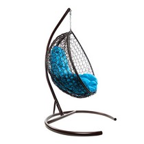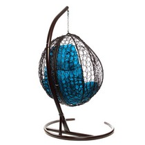 Подвесное кресло Кокон Капля складной ротанг (коричневый/голубой)
