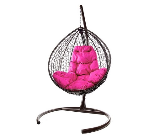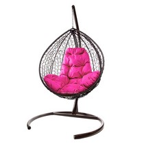 Подвесное кресло Кокон Капля складной ротанг (коричневый/розовый)